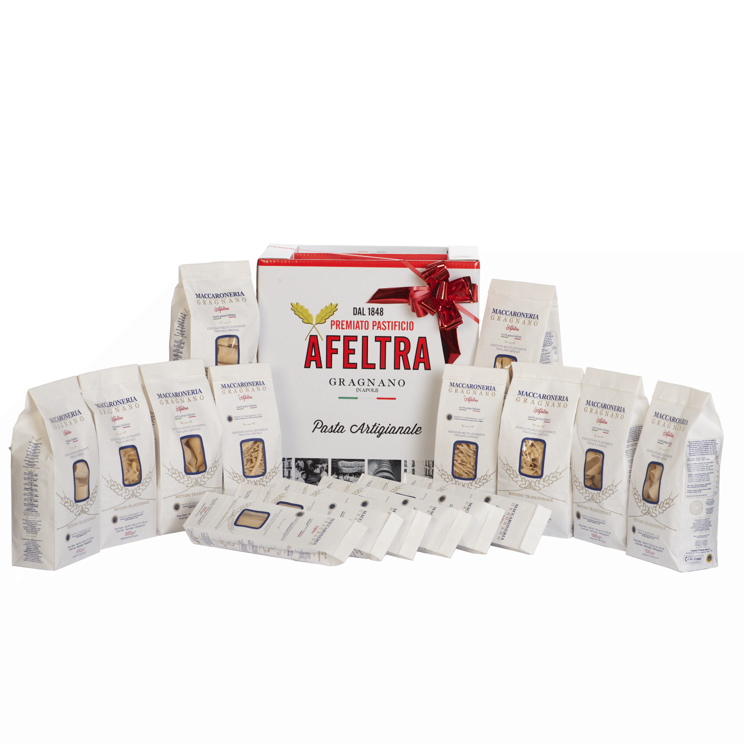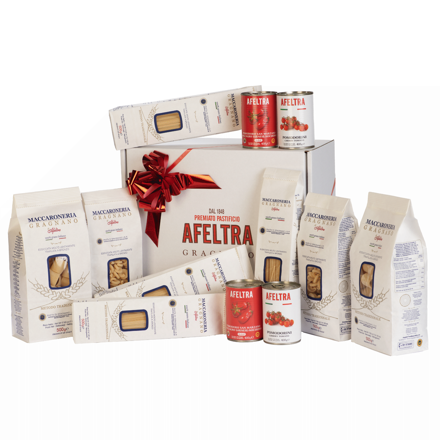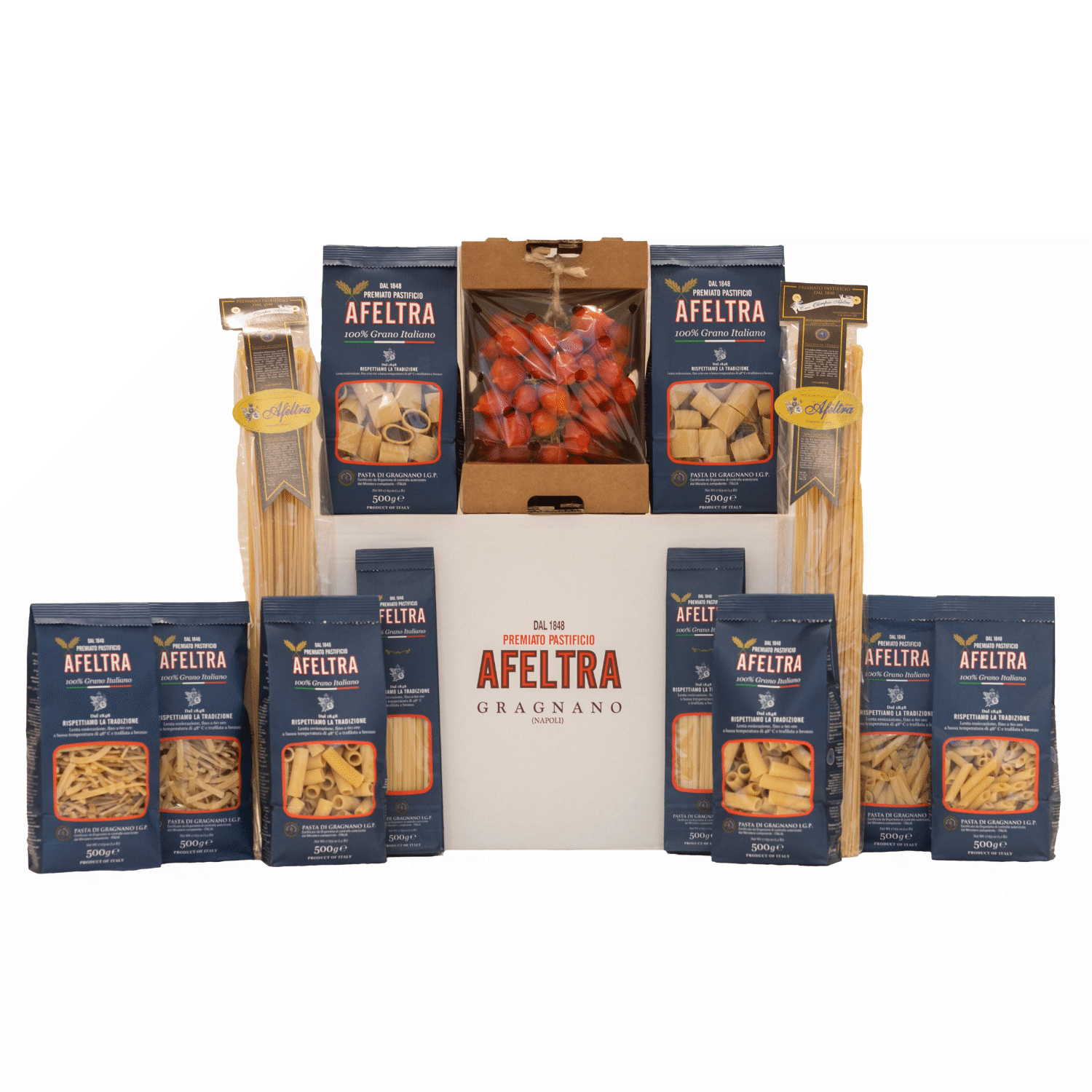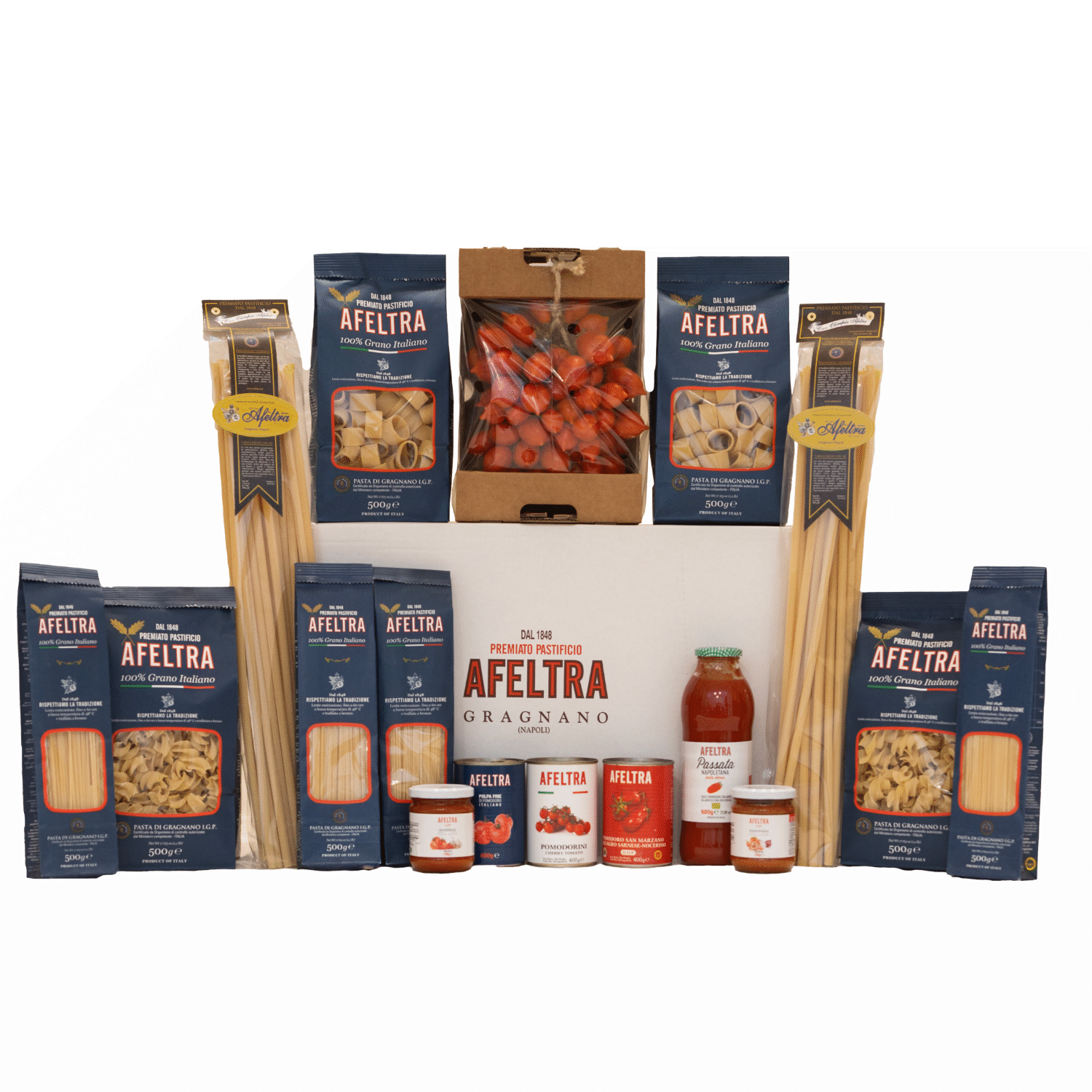 Personalize your gift by choosing the products you prefer from our assortment. Pasta, sauces and condiments: combine the ingredients that best express the authentic taste of the Afeltra tradition. Complete it all with a personalized box for a unique and unforgettable touch.